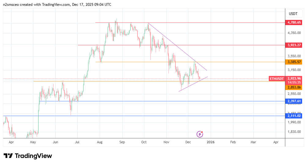 Ethereum’s failure to break the resistance at 4842 leaves the ETHUSD pair likely to remain within the predefined range for the rest of 2025. The recent selloff seen in November and December 2025 means that the Ethereum price prediction cluster for 2025 sees the likelihood of price action remaining capped around $3000 while seeking stability at any of the incoming support marks identified in the technical analysis section below.