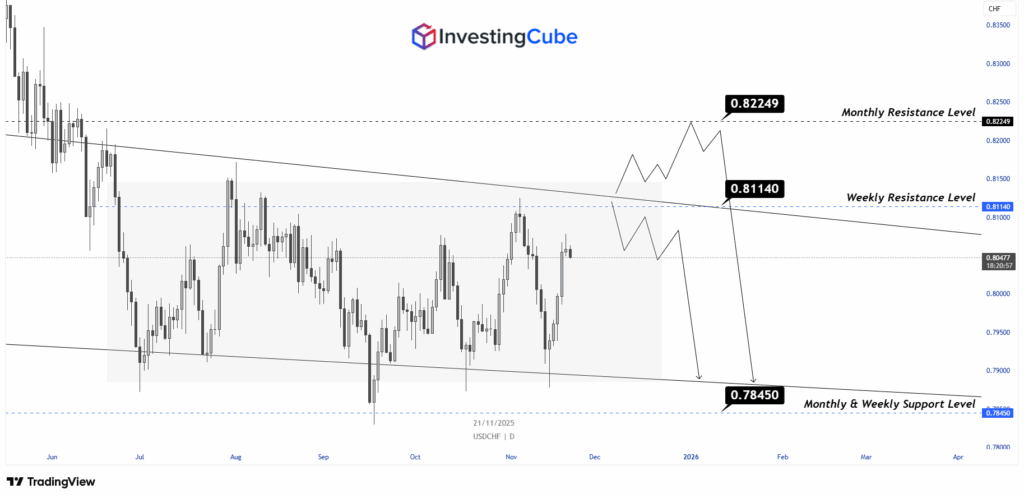- USDCHF remains pressured near multi-year lows, driven by a narrowing US-Swiss yield spread and persistent safe-haven demand for the Swiss Franc.