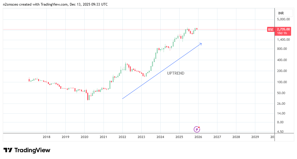 Figure 1: Monthly chart of BSE Ltd showing long-term uptrend (snapshot taken on December 13, 2025)