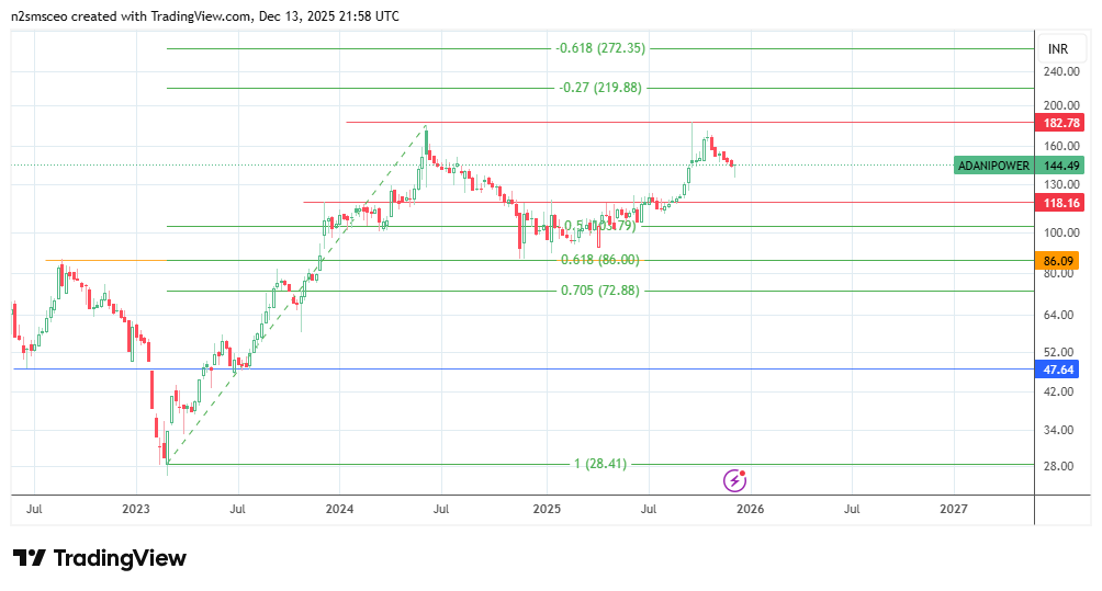 Figure 2: Weekly chart of ADANIPOWER showing key price levels (snapshot taken on December 13, 2025)