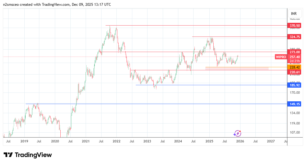 Wipro share price targets for the rest of 2025 are not likely to exceed the INR 271.90 price level.